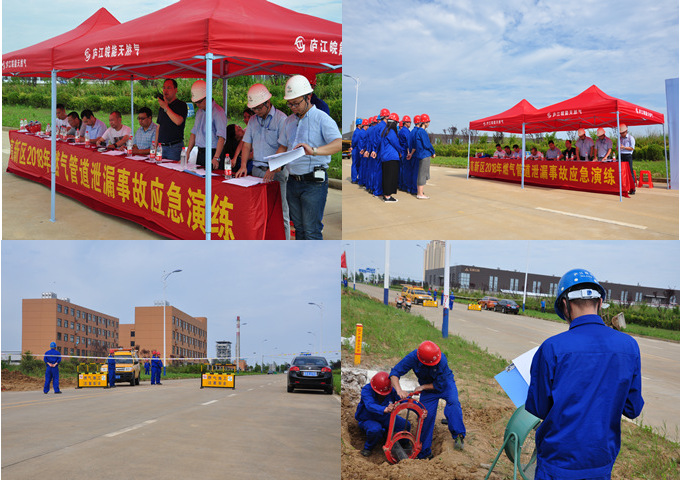 “我宣布,演练正式开始!”下午15:00,随着庐江高新区管委会副主任胡昕一声令下,应急演练正式开始,参演人员迅速进入演练角色。此次演练以庐江皖能中塘路段DN110中压燃气管道被第三方施工挖破,造成大量天然气泄漏并起火为模拟情景,现场情况十分紧急。