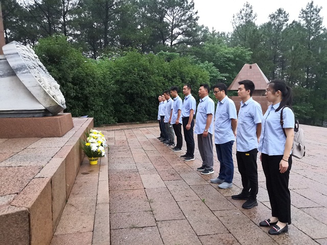 在支部书记、公司总经理夏翔的带领下,党员同志们整齐严肃地站在革命英雄纪念碑前鞠躬默哀,献上一束束菊花,表达对革命先烈的尊敬和哀思。支部书记带领大家重温入党誓词,表达对烈士的敬仰、对祖国的热爱。誓词虽短,但提醒着党员们要牢记党的宗旨,不忘初心,要认真学习革命先辈们艰苦奋斗、无私奉献、敢于牺牲的崇高品格,要继承和发扬革命先辈们坚韧不拔、公而忘私、勇往直前的大无畏精神。