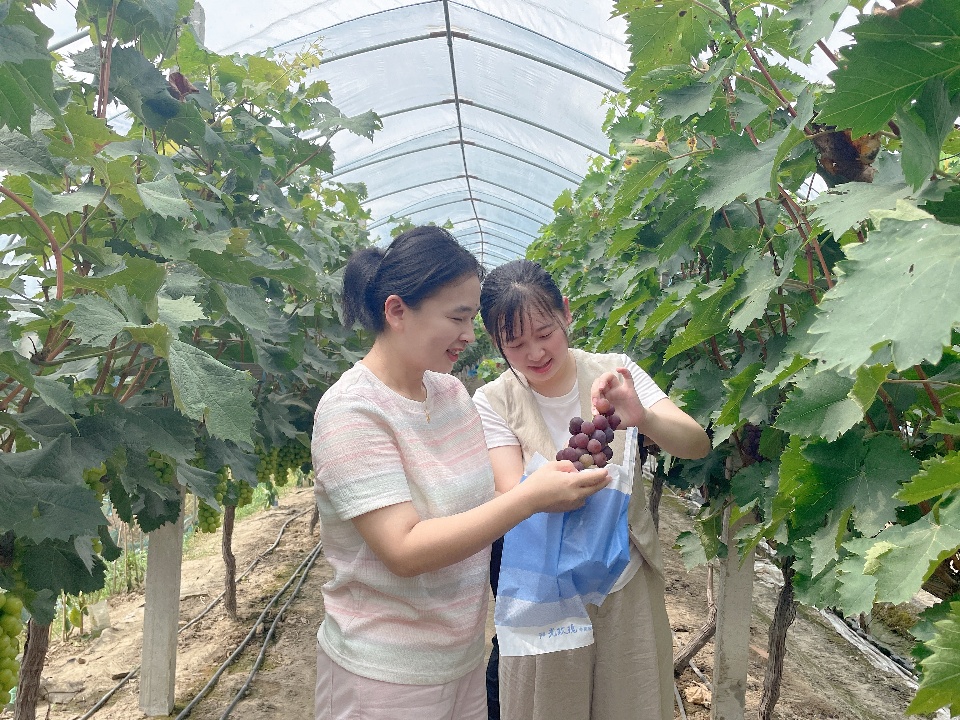 走进采摘园区,一串串葡萄如玛瑙般缀满藤蔓,紫红的饱满发亮,金黄的通透诱人;微风轻轻掠过,裹挟着浓郁的果香扑面而来,让人沉醉。在活动现场,种植人员手把手讲授采摘要领,职工们很快掌握采摘方法,大家三五成群,有的搭手托举果串,有的持剪轻旋果柄,配合得默契十足。经过一番忙碌,每个人的篮筐里都盛满了晶莹剔透的果实,更装满了轻松与惬意。在欢声笑语间,职工们切磋交流,比拼劳动成果,现场开展了葡萄“品鉴会”。随后,大家来到果园树荫下休息,在宁静的溪水边纳凉消暑,驱走夏日的热气,尽情感受着盛夏大自然的美好时光。