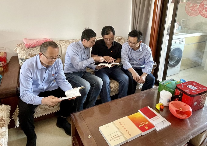 公司生产支部委员来到退休党员李孝泉家,将《习近平著作选读》《习近平新时代中国特色社会主义思想专题摘编》等书籍送到他的手中。面对面帮学助学,向他详细介绍主题教育的重点内容,以及下一步活动安排,并邀请他参与到各项活动中来,多提宝贵意见。
