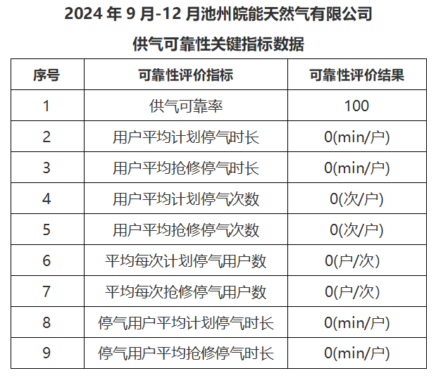 2024年9月-12月供气可靠性关键指标数据