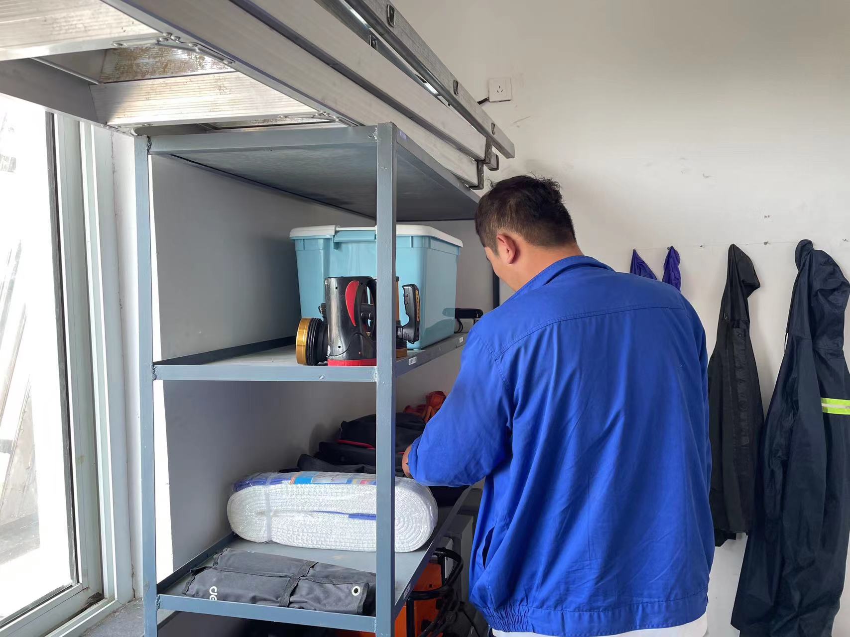 5月7日,省天然气皖能新奥颍上分公司班组长正在检查防汛物资情况,并进行补缺补漏,添置防汛物资器材,确保防汛物资及时更新。