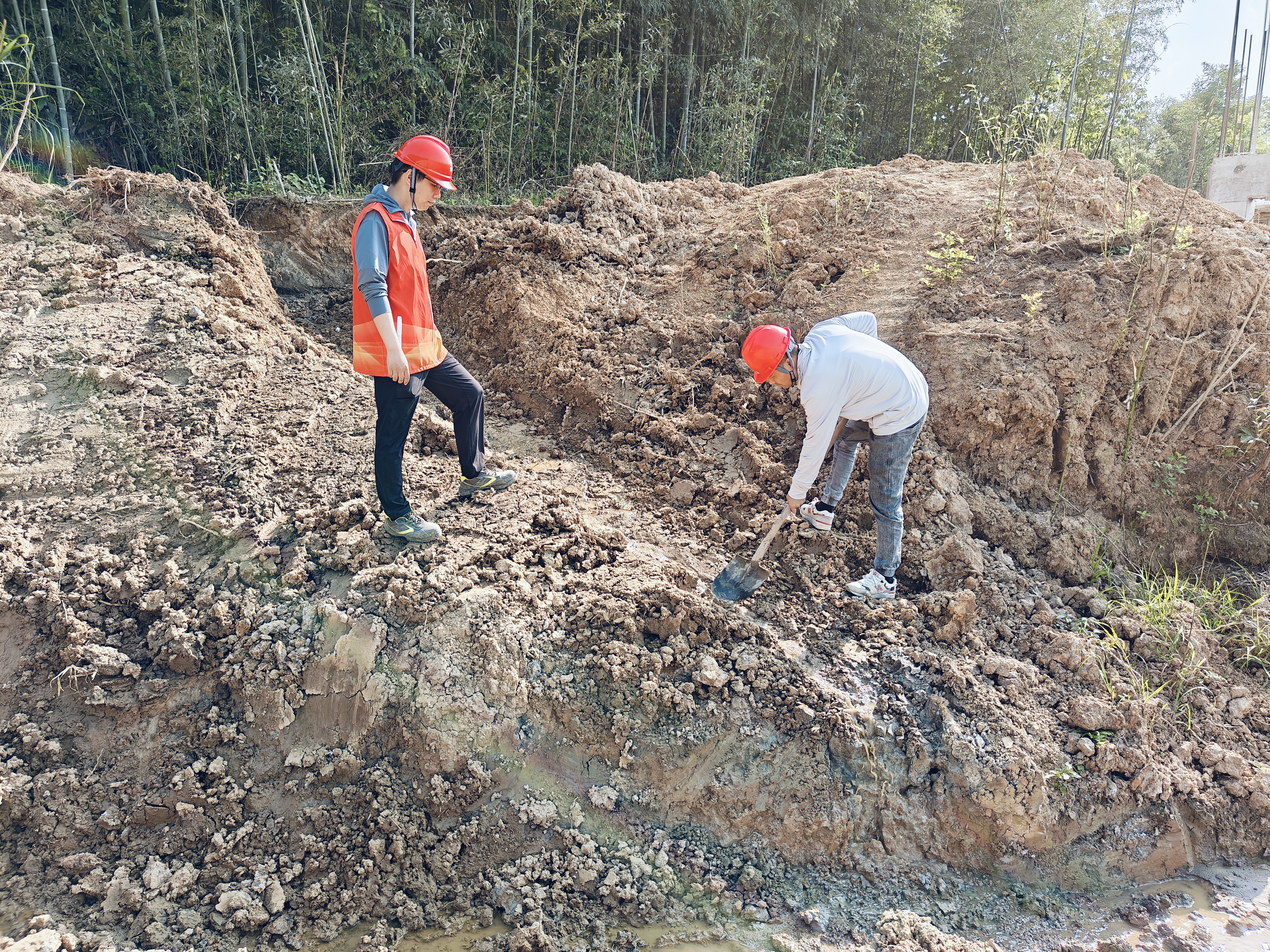 5月7日,省充换电公司皖小能先锋队员和施工人员在皖能综合能源港霍山迎宾大道站项目建设现场巡查、清理站场周围临时排水沟。