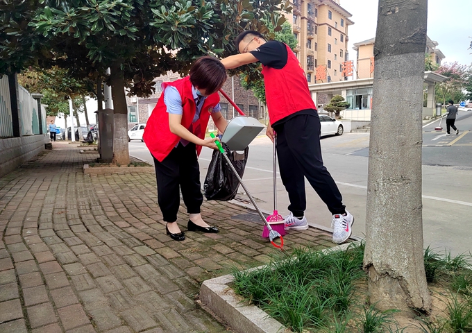 活动现场,志愿者们热情高涨,身穿红马甲,手持扫把、拾物钳,认真清理包保小区内烟头、纸屑、枯枝等垃圾杂物,用实际行动为创建文明城市添砖加瓦。