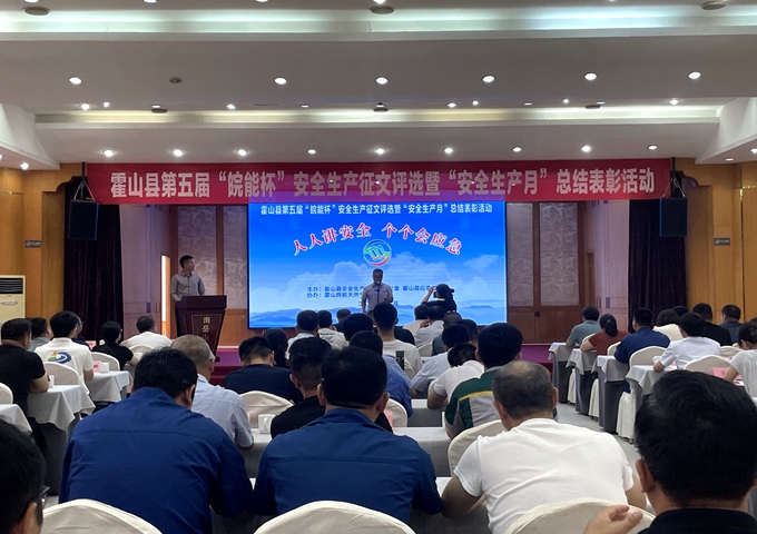 近日,由霍山县安全生产委员会办公室、霍山县应急管理局主办,霍山公司承办的霍山县第五届“皖能杯”安全生产征文评选暨“安全生产月”总结表彰活动在南岳山庄成功举办。六安市应急管理局党委委员、副局长叶少勇,霍山县安委办主任、应急管理局党委书记、局长奚维柱以及论文作者、受表彰的先进企业代表共110余人参加。