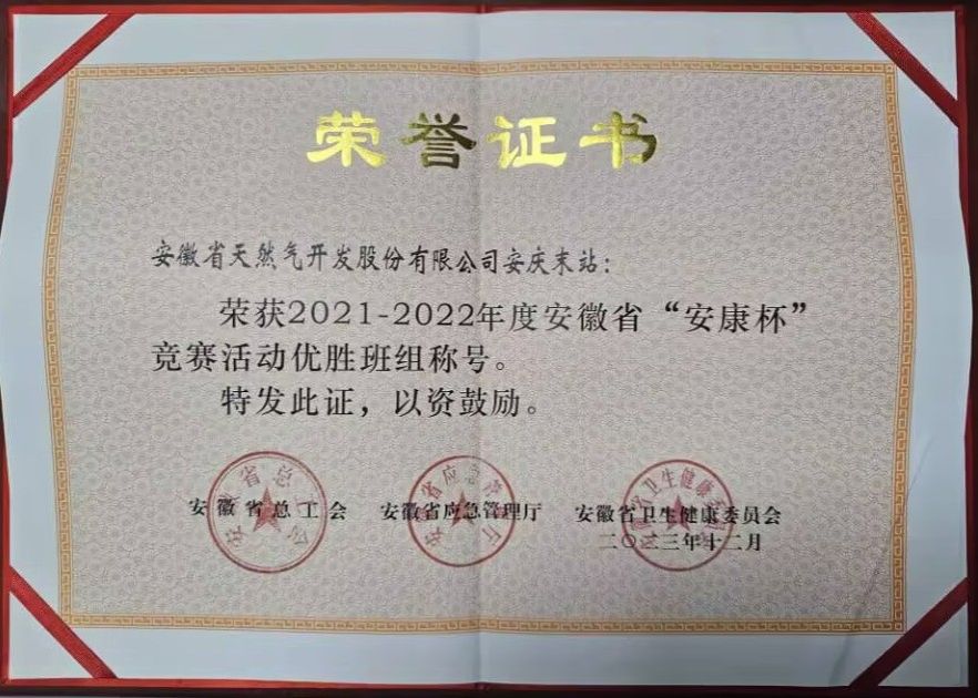 2021-2022年度安徽省“安康杯”竞赛活动优胜班组