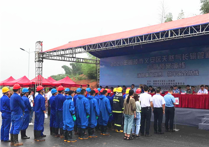 为扎实开展全国第19个“安全生产月”,弘扬“消除事故隐患,筑牢安全防线”主题,提高对天然气长输管道泄漏事故救援联动反应能力,6月23日上午,由省天然气公司承办的2020年铜陵地区天然气长输管道安全事故应急演练在铜陵市义安区成功举行。