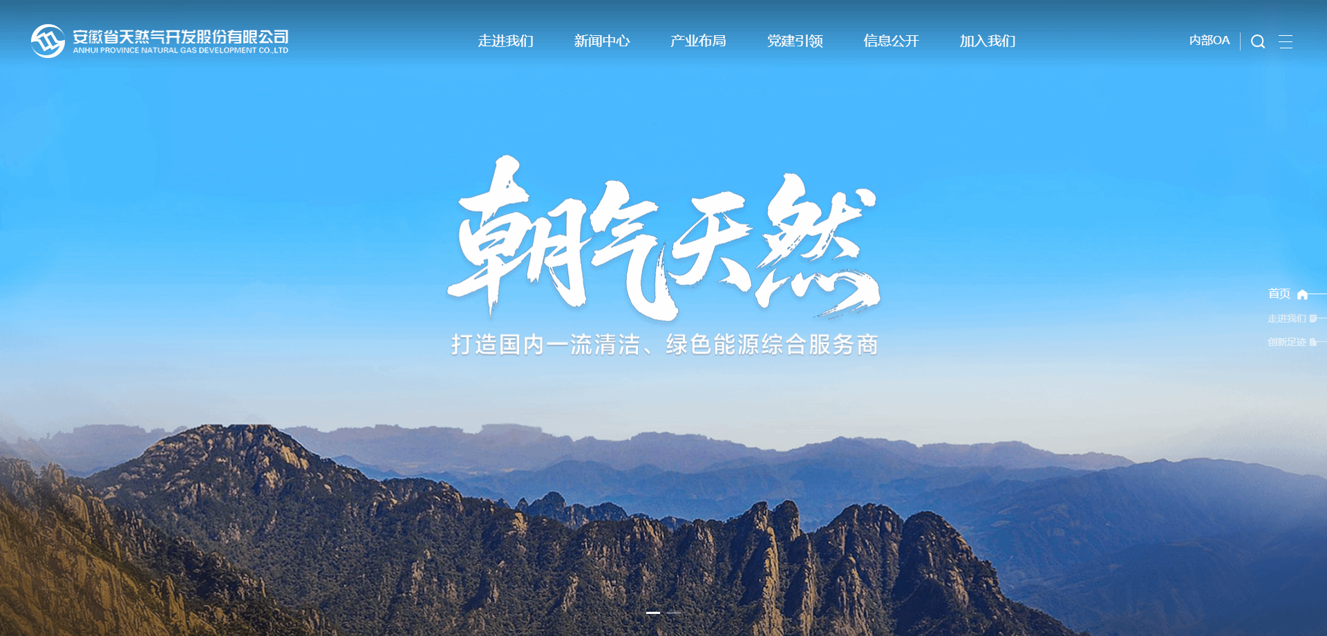 在页面架构上,网站整体划分为“走进我们、新闻中心、产业布局、党建引领、信息公开、加入我们”六大核心栏目,各版块相对独立,便于用户快速获取信息。本次升级重点丰富了“走进我们”与“产业布局”两大板块,系统梳理了省天然气公司二十年发展历程中的关键节点与典型成果,全面呈现公司在“五大产业布局”方面的战略路径与实施进展,清晰勾勒出企业在绿色能源转型道路上的坚实足迹与责任担当。