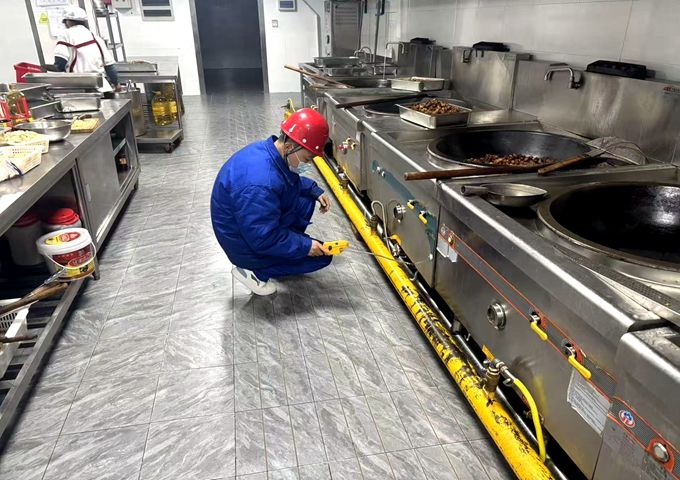 在此次专项检查中,霍山公司组织精锐技术力量,深入辖区每一所校园,对燃气管道、调压设备、计量装置、用气终端及泄漏报警系统开展“拉网式”隐患排查。重点聚焦管线锈蚀老化、连接软管超期使用、通风条件不达标、安全装置失效等关键风险点,坚持“发现一处、整改一处、闭环一处”,切实做到隐患动态清零。同时,技术人员还现场为学校后勤及食堂操作人员讲解安全用气常识,演示应急处置流程,帮助提升学校后勤人员的安全素养和应急反应能力。