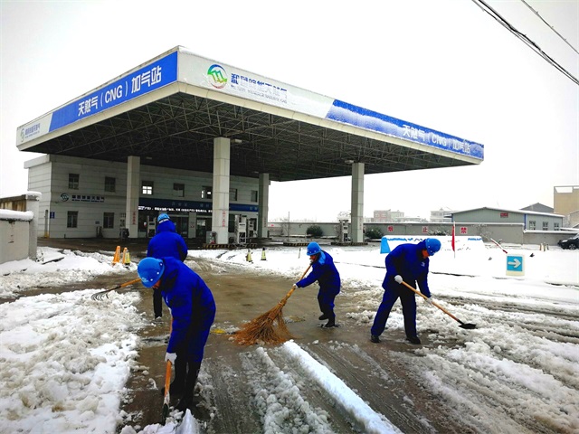 为及时发现、解决输气管道及相关调压设施的问题,公司及时组织人员做好生产设备安全检测和维护工作,并调派大量人力加强对输气管道的巡线频率,确保燃气设施生产运行正常。通过市场宣传、微信互动等方式,公司做好用户节约用气的解释和引导工作。启动各部门联动24小时待命机制,员工提前进场清扫积雪,保供人员各司其职,高效完成各项供气任务。