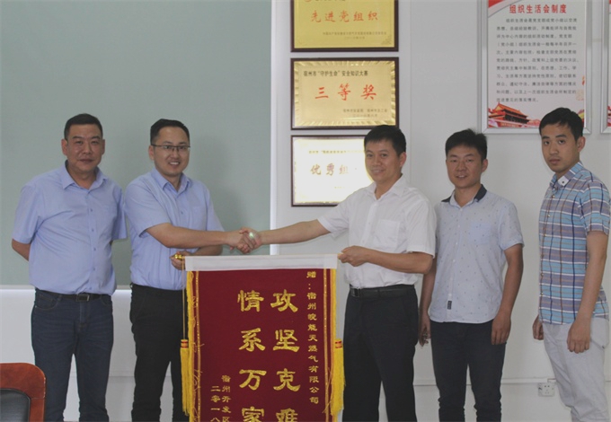 6月12日下午,宿州经济技术开发区管委会规划局年立志主任一行专程来到省天然气宿州公司,将一面印有“攻坚克难,情系万家”的锦旗送到了副总经理桂中明手中。