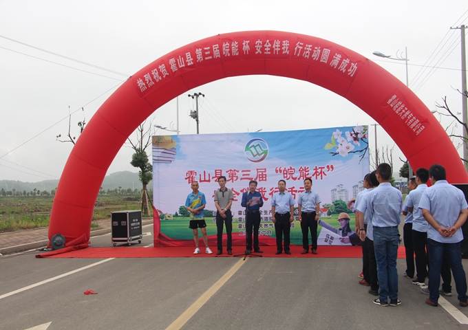 6月23日上午,霍山县高桥湾管委会门口人头攒动,热闹非常,在第17个安全生产月之际,第三届“皖能杯”安全伴我行活动在此拉开序幕。县安监局局长徐雪涛、高桥湾工委委员、纪工委书记王开政、霍山皖能总经理吴冠琼、副总经理陈跃南出席开幕式。