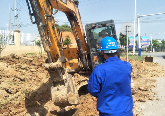 5月18日12时,广德皖能巡线员张彩侨发现新杭镇门流路附近有施工单位强行在燃气管道正上方使用大型挖掘机械进行开挖施工。