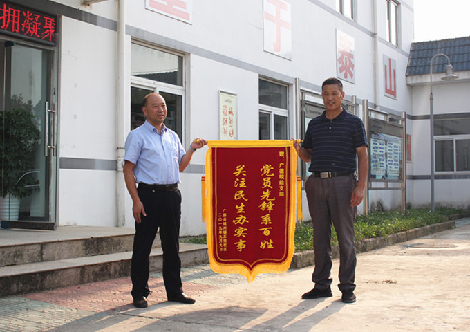 9月16日下午,苏觉社区党委委员、副书记刘继祥协同社区代表将一面印有“党员先锋系百姓,关注民生办实事”的锦旗交至广德皖能党支部书记陶青福手中,并对支部用心服务社区建设表达诚挚的谢意。