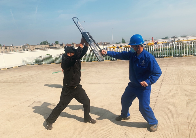 为切实加强输气站场安全防范工作,提高从业人员快速处置突发性事件综合能力,4月26日,省天然气公司颍东输气站组织开展2020年上半年反恐知识培训及器械应急演练。