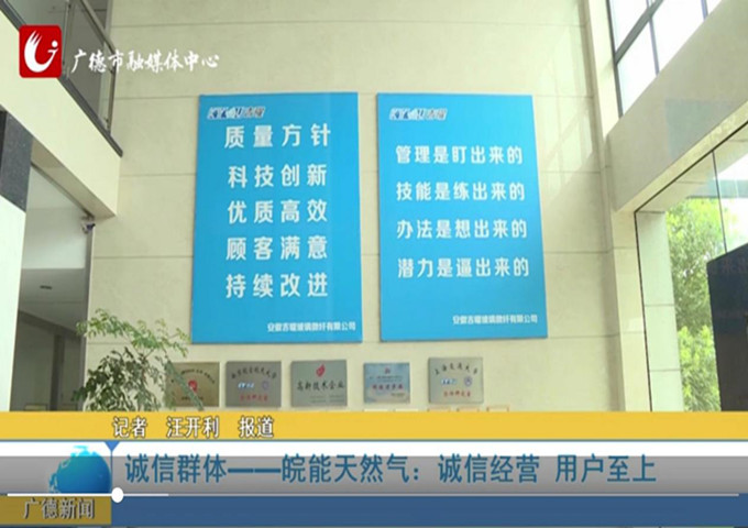 在广德市创建全国文明城市的决战决胜之年,广德公司作为弘扬诚信经营的企业代表受到媒体的广泛宣传,是对广德公司诚信经营的充分肯定,今后广德公司将以诚信经营为基石,不断开拓创新、锐意进取,为实现“千亿皖能 百亿燃气”贡献力量。(广德公司/张国敏 供稿)