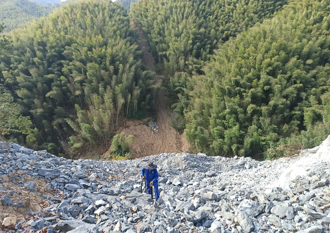 本次检测主要包括管道的走向、埋深检测,防腐层漏电点、杂散电流干扰、土壤电阻率、阴极保护有效性检测等环节,分析现场检测数据,对管线防腐层质量作出准确评判。黄山地区山峰陡峭,管道蜿蜒盘旋,线路复杂,攀登艰难,且检测人员在走线检测中需随身携带管线检测仪、杂散电流测试仪等多种检测设备,工作难度颇大。检测人员克服野外作业环境恶劣、工作强度大等困难,战胜地形环境的阻扰勇往直前,经过50余天的奋战,顺利完成了检测任务。