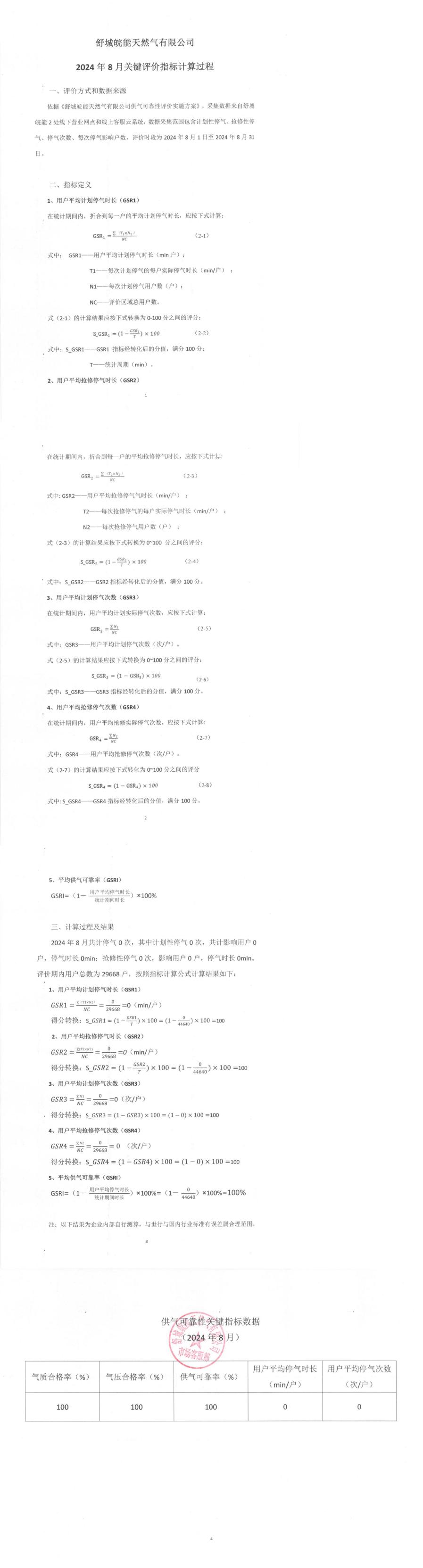 供气可靠性关键指标数据