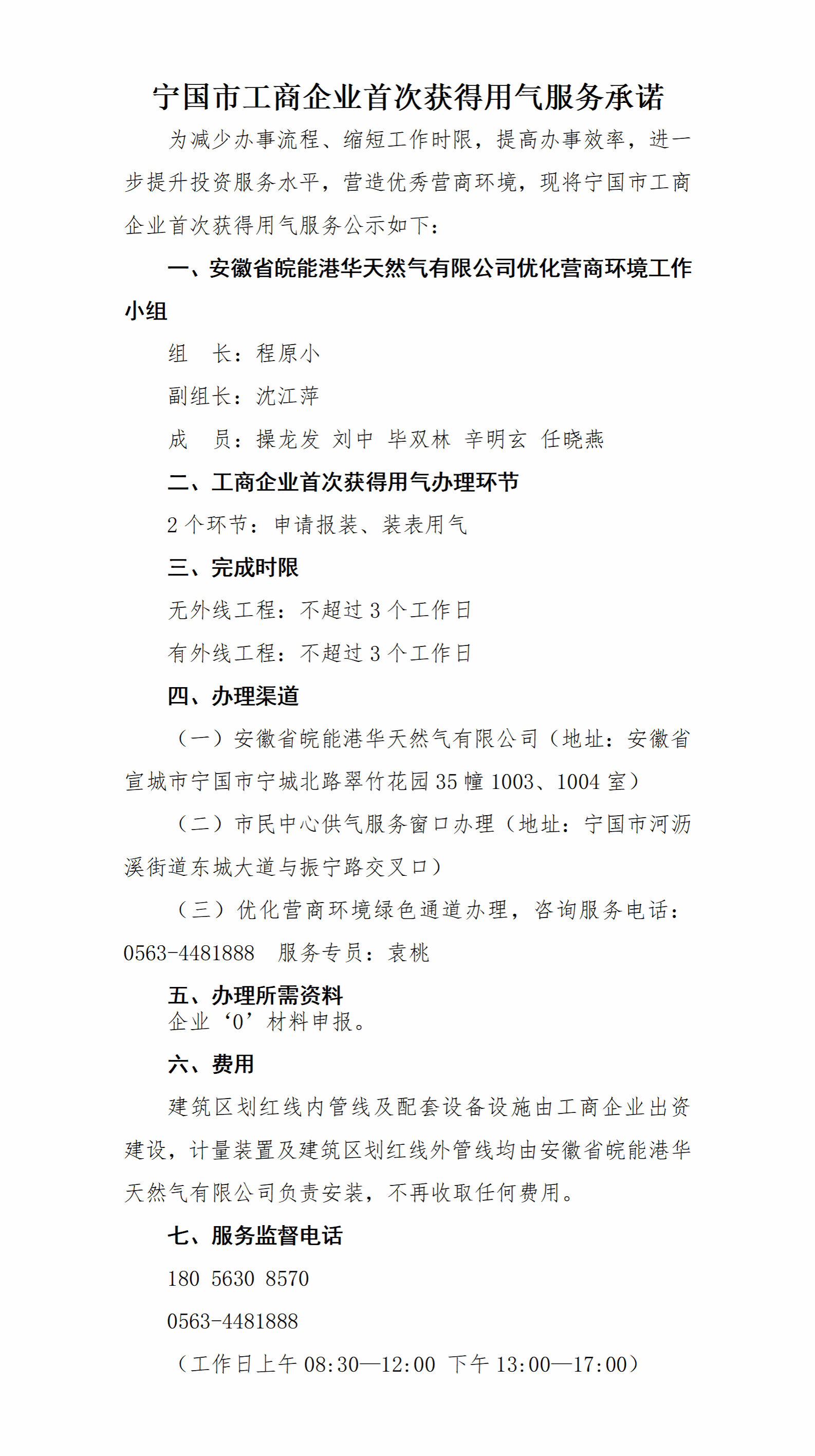安徽省皖能港华天然气有限公司服务承诺