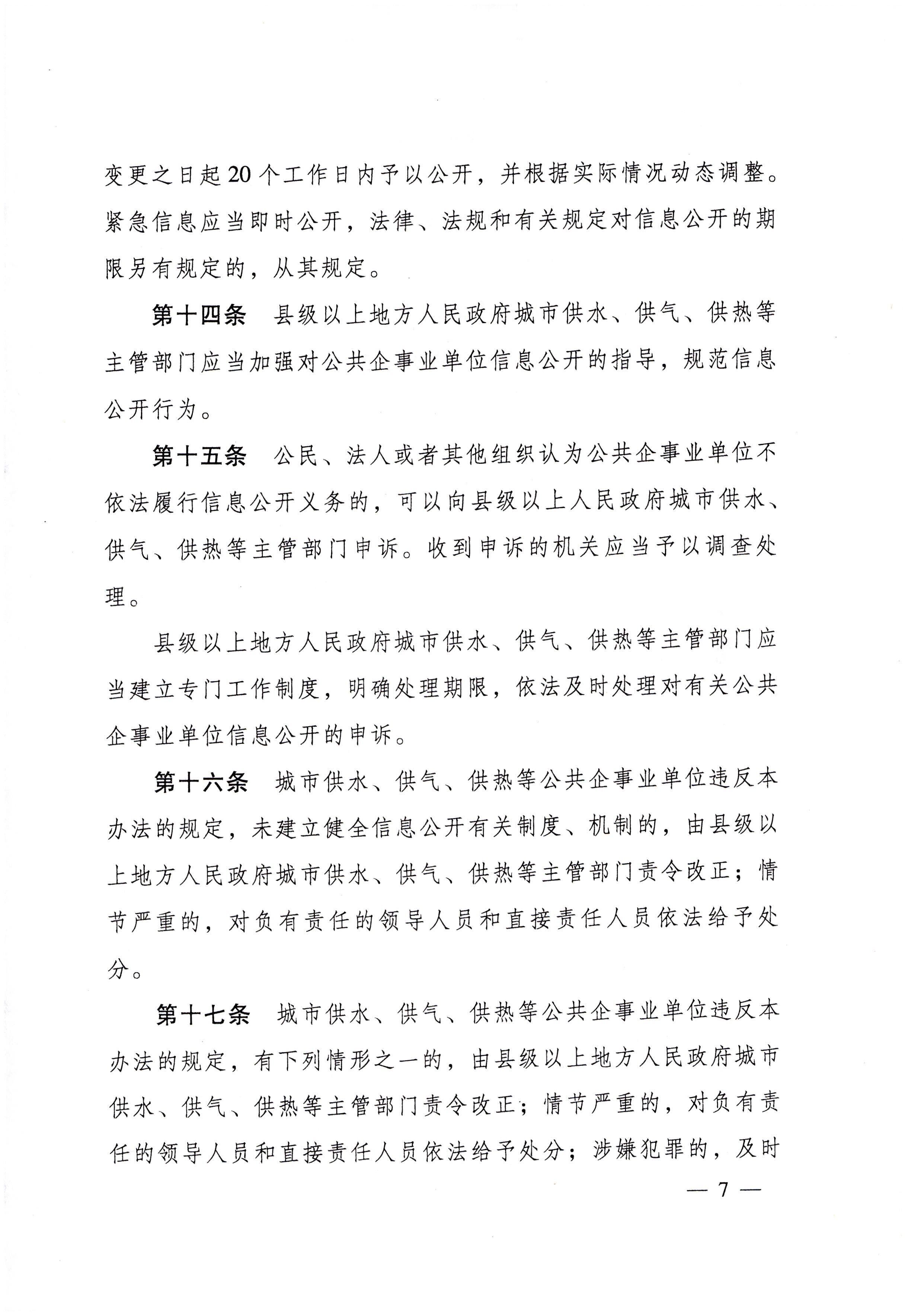 住房和城乡建设部关于印发《供水、供气、供热等公共企事业单位信息公开实施办法》的通知