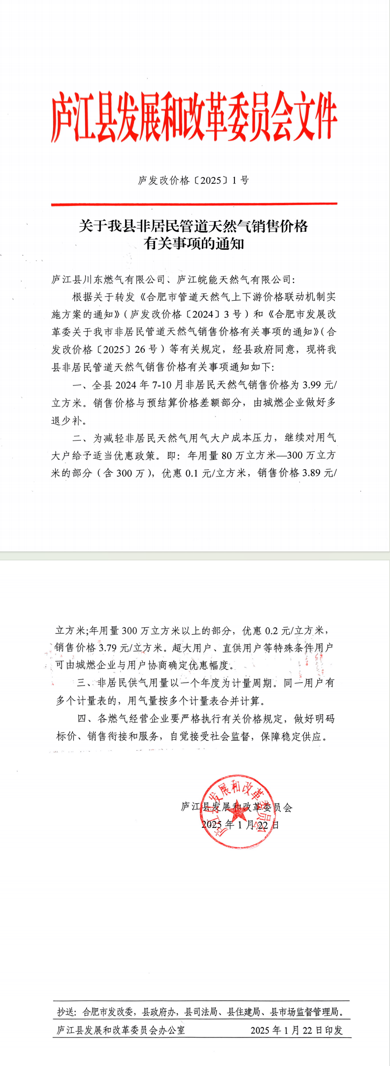 下一条:202409关于我县非居民管道天然气销售价格有关事项的通知(庐发改价格【2024】7号